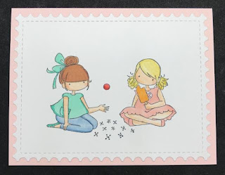 I saw this stamp set when I went to buy another one that was on sale at Stampingbella. I immediately knew I had to get it to use for a birthday card for one of my childhood friends. We didn't play Jacks but every other board game, Barbie and paper dolls. I made some to sell but the 2 blondes are for her. Great set and memories.